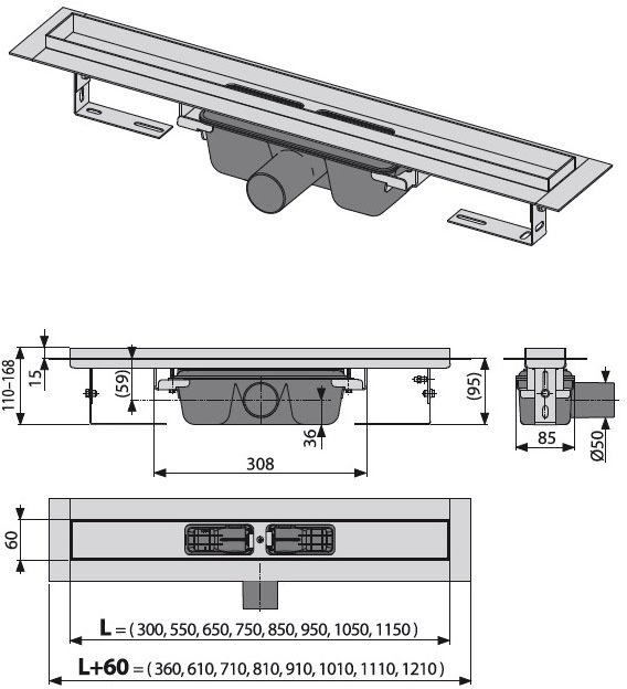 Душевой лоток AlcaPlast Professional APZ6-850 с опорами