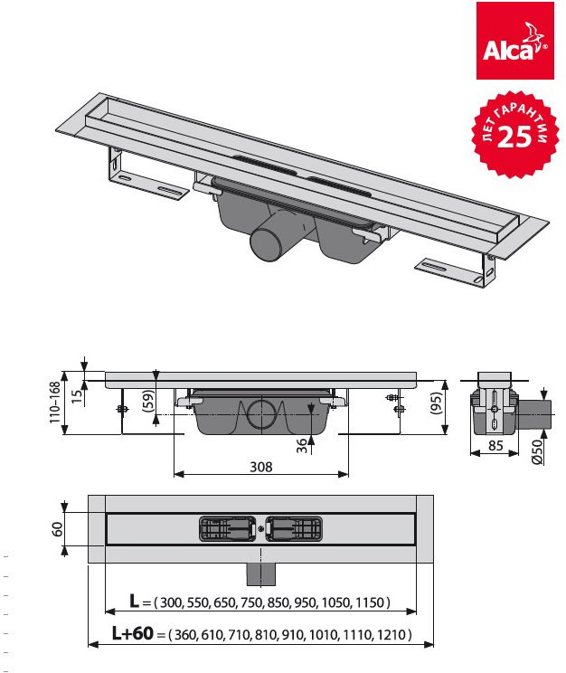Душевой лоток AlcaPlast Professional APZ6-750 с опорами