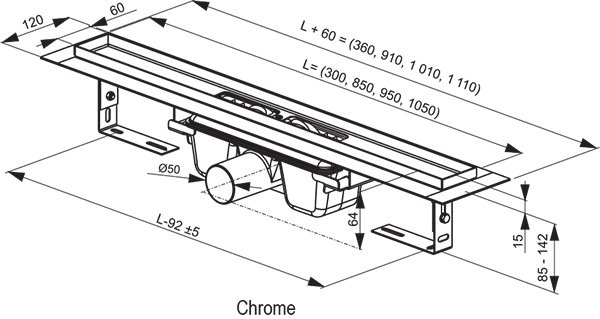 Специальная обработка, предотвращающая налипания грязи. Монтажная высота 100 мм.