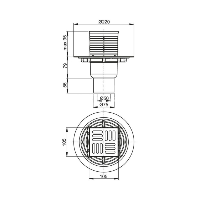 Корпус сливного трапа с прямым подключением к стоку Ø50/75 мм