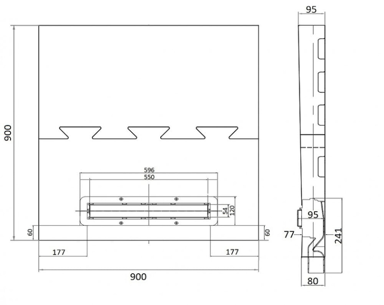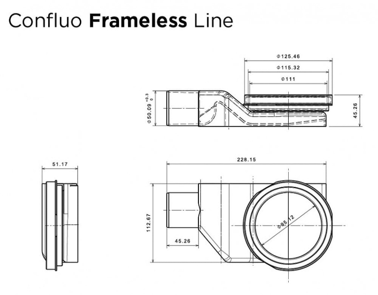 Описание комплектации со встроенным душевым лотком Frameless Line Black Glass 550