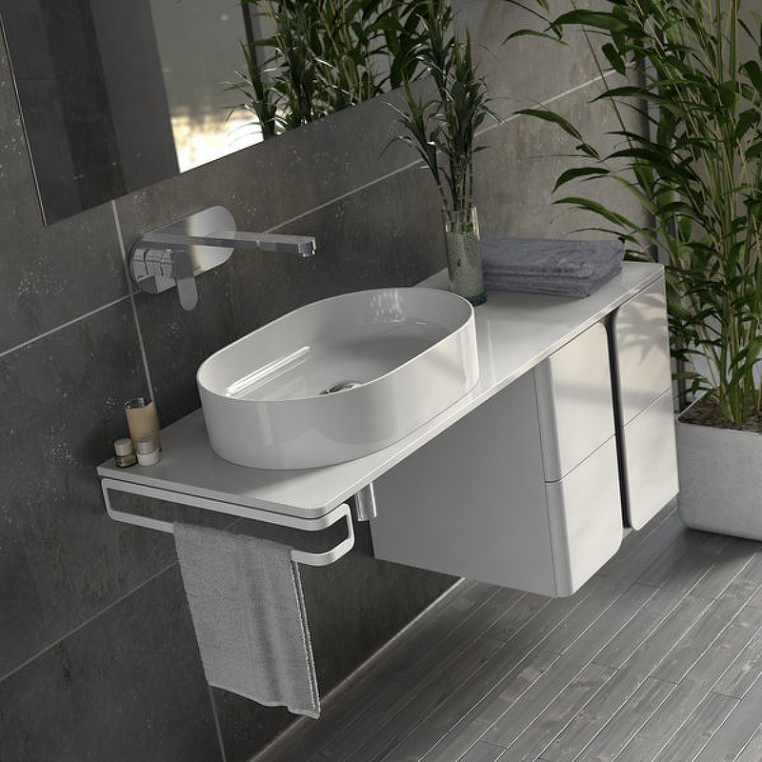 Полотенцедержатель Balance белого цвета устанавливается под столешницей Balance 1200.