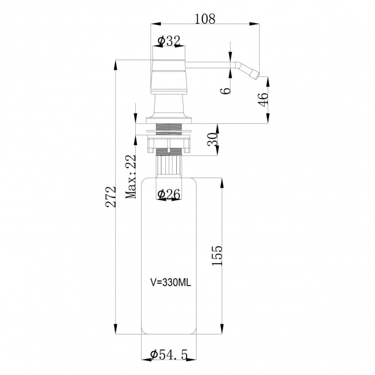 Максимальная толщина столешницы, мм - 37. Объем 320 мл