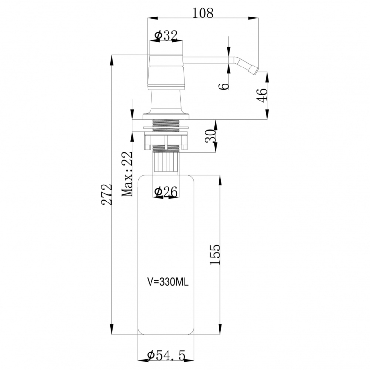 Максимальная толщина столешницы, мм - 37. Объем 320 мл
