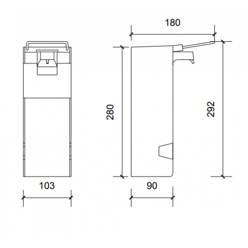 Медицинский дозатор для мыла. Имеет длинный рычаг активации для использования локтем или предплечьем. Самый простой способ предотвратить распространение микробов и бактерий - при использовании не происходит контакта ладони с дозатором