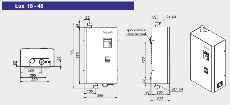 Котел электрический Zota Lux 24 представляет собой электроводонагреватель и предназначен для обогрева жилых и производственных помещений. Электрокотел должен быть подключен к автономной системе отопления и наполнен теплоносителем. Электроотопительный прибор может работать в помещениях с температурой окружающей среды не ниже +1 оС и не выше +30 оС и влажностью не более 80%. Котел Lux представляет собой инновационную модель отопительного оборудования Zota третьего поколения с автоматической плавной регулировкой температуры, подключением к системе «теплый пол» без дополнительного оборудования и удобным управлением через ЖК-дисплей. Регулировка температуры воздуха в помещении от +5 до +35 оС позволяет сокращать расходы на отопление за счет поддержания минимальной безопасной температуры. В электрокотле реализована схема защиты блока управления от кратковременного предельного перенапряжения сети (до 400 В). А опциональное подключение модуля GSM позволит контролировать параметры системы отопления и управлять основными функциями котла с помощью мобильного телефона или планшета. GSM-модуль также позволяет получать аварийные оповещения.