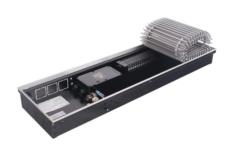 Внутрипольный вентиляторный конвектор STOUT типа SCQ – встраиваемый в конструкцию пола отопительный прибор с вентиляторами, работающий по принципу вынужденной конвекции и предназначенный для применения в системах водяного отопления жилых и общественных зданий. Он с успехом может устанавливаться у высокого витражного остекления без нарушения эстетики помещения, надежно защищая людей от ниспадающих от окон потоков холодного воздуха.