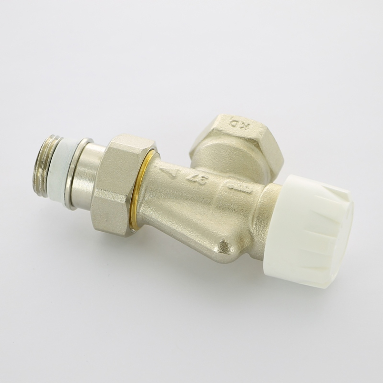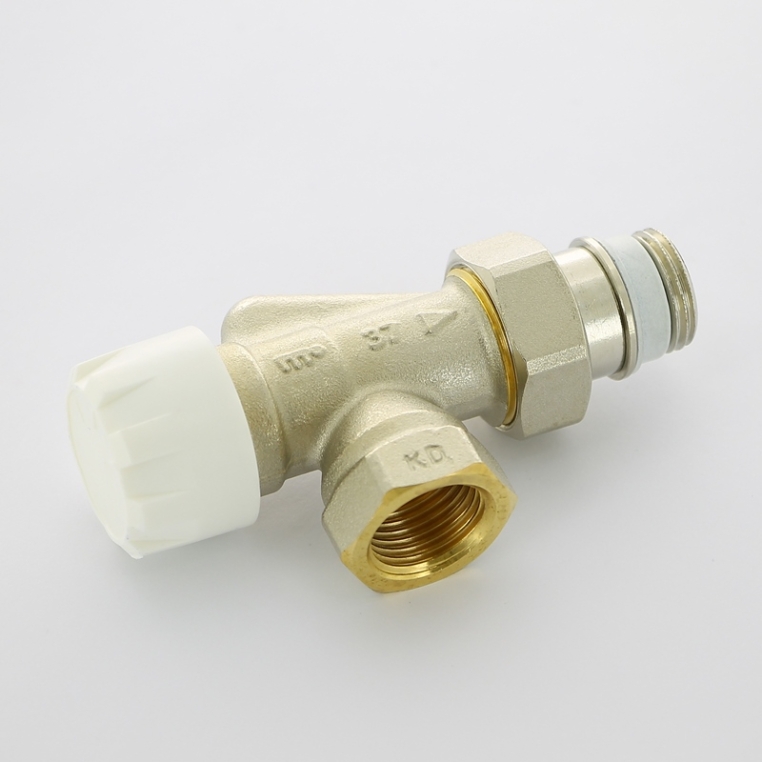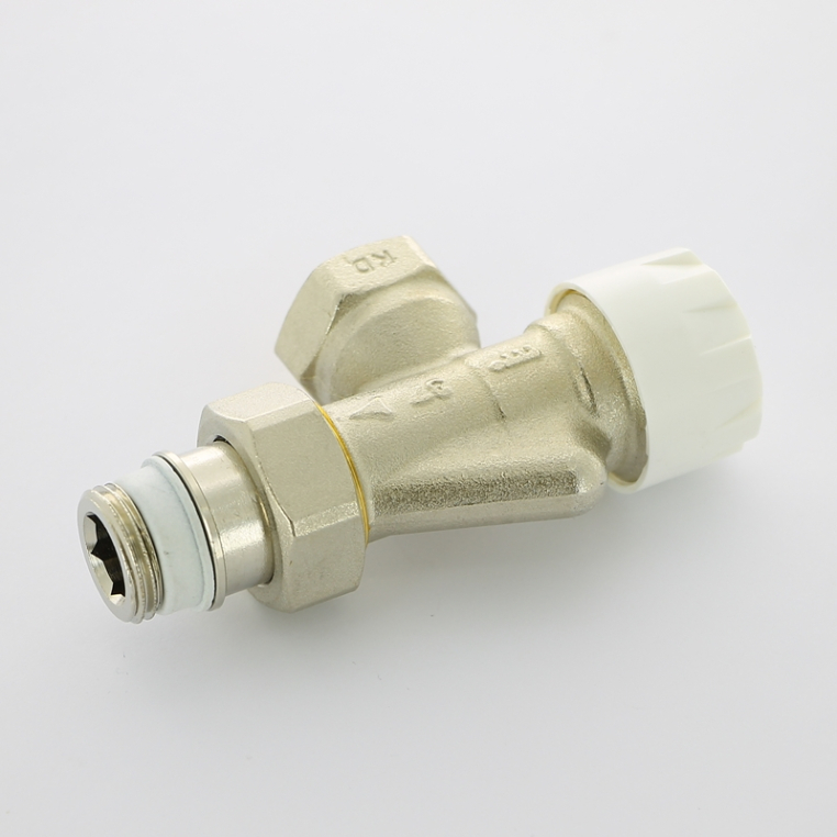 Вентиль термостатический Simplex угловой-осевой HВ 1/2" с преднастройкой никель с разъем. соединением (F34008)