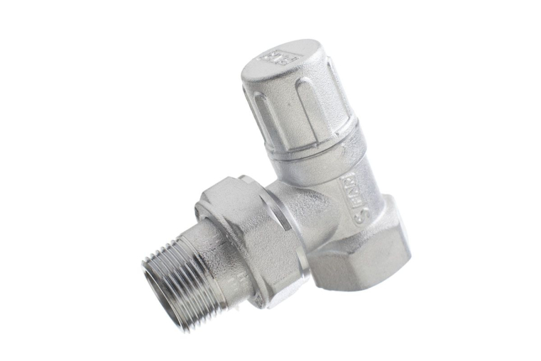 Хромированный угловой запорный вентиль.