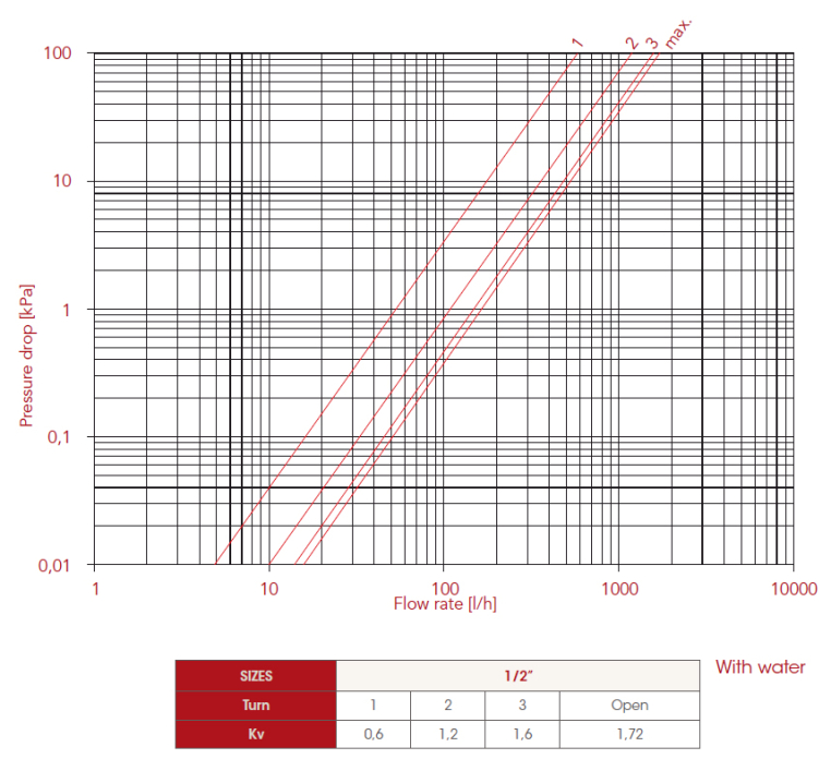 - Пропускная способность Kvs: 1,72 куб.м/ч (1720 л/ч)