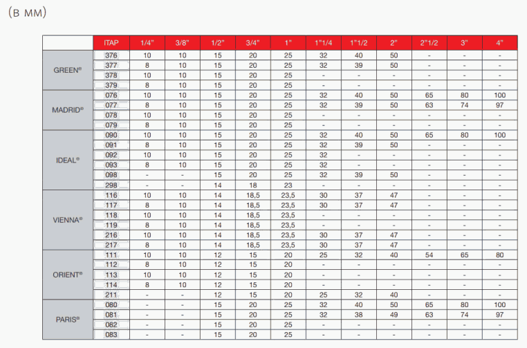 - Область применения : системы ХВС и ГВС, отопления, кондиционирования, газов