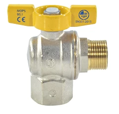Кран шаровой латунь никель угловой газ R781 Ду 25 Ру5 ВР/НР полнопроходной бабочка Giacomini R781GBX005