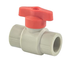 Кран шаровой PP-R серый Дн 25 полупроходной с красной ручкой VALFEX 20255025RГ