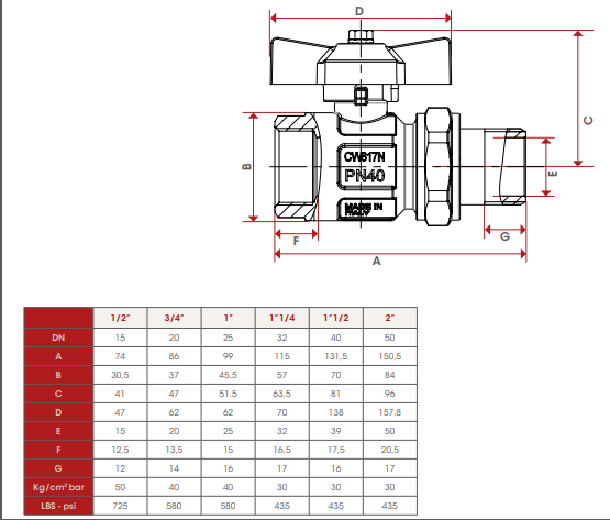 Кран шаровый Itap IDEAL 098 1" 1/2 НР/ВР американка полнопроходной ручка-бабочка (098 11/2)