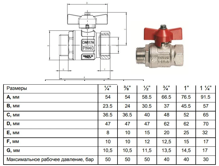- MAX рабочее давление, бар: 50