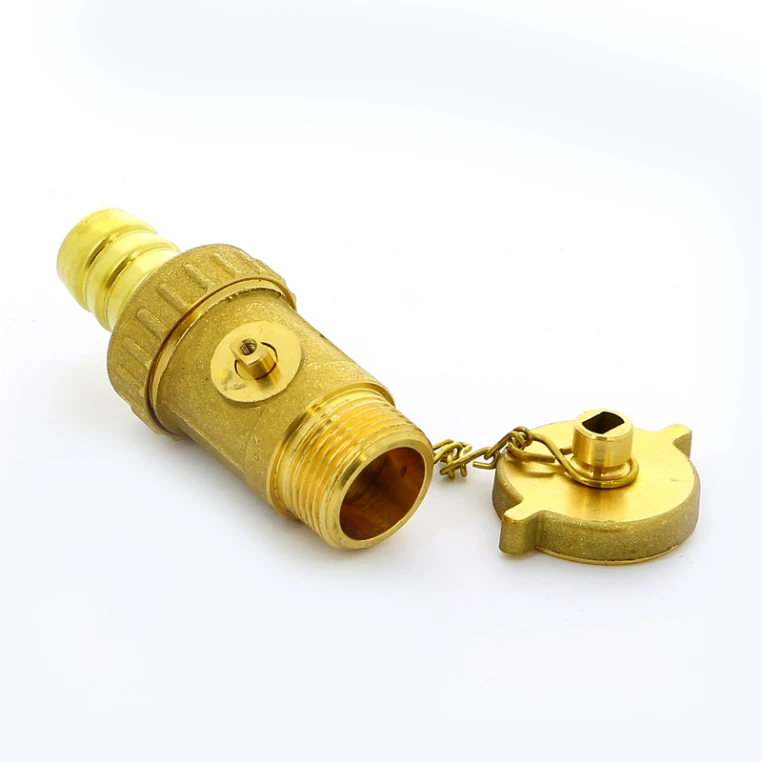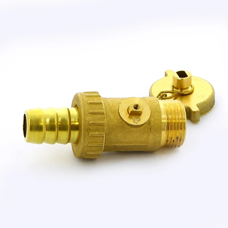 Кран шаровый H-штуцер сливной маховик ITAP 3/4" дренажный с латунным штуцером предназначен для промышленного и бытового использования в системах подачи горячей и холодной воды, нефтепродуктов, газов и сжатого воздуха, для слива и заполнения систем. Корпус крана выполняется из латуни. Диапазон рабочих температур для воды составляет: от 0 до +90 оС; для воздуха: от -15 до +110 оС. Для подключения к трубопроводу используется внешняя резьба H ISO228. На другом конце крана расположен латунный штуцер с внешней резьбой H. Шар выполняются из хромированной латуни, шток, гайка, цепочка, кольцо, крышка с резьбой – из латуни, уплотнения и прокладки – из тефлона, NBR и ПВХ