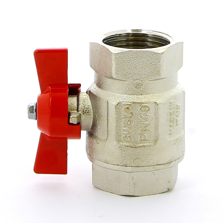 Кран шаровый BB Ideal бабочка ITAP 1" полнопроходной предназначен для быстрого и многократного перекрытия потока жидкости в системах отопления, горячего и холодного водоснабжения, использования в системах нефтепродуктов, кондиционирования, газов и сжатого воздуха. Применяется в домашних, так и в промышленных условиях. Корпус крана выполняется из никелированной латуни. Минимальная рабочая температура -20 оС, максимальная до +150 оС в отсутствии пара (для жидкости). В системах сжатого воздуха температурный диапазон составляет от -15 оС до +220 оС. Для подключения к трубопроводу используется внутренняя резьба BB ISO228. Для перекрытия потока жидкости используется ручка-бабочка из алюминия. Шар выполняется из хромированной латуни, уплотнения – из тефлона, витона и NBR, шток – из латуни