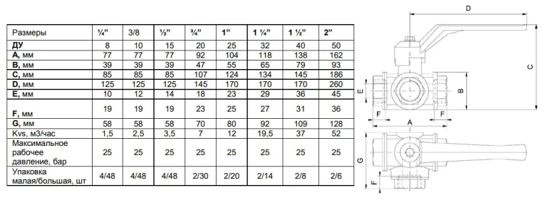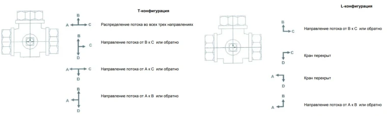 - Тип: шаровый кран трехходовой