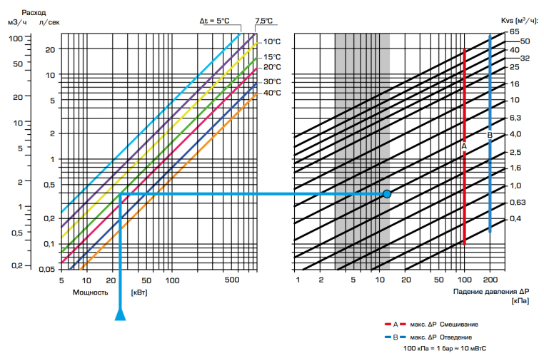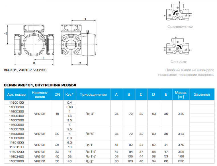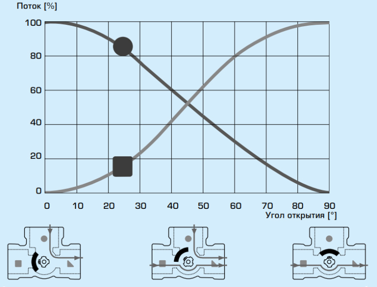 - Утечка: утечка через закрытый клапан, в % от потока, отводной — 0,02; утечка через закрытый клапан, в % от потока, смесительный — 0,05