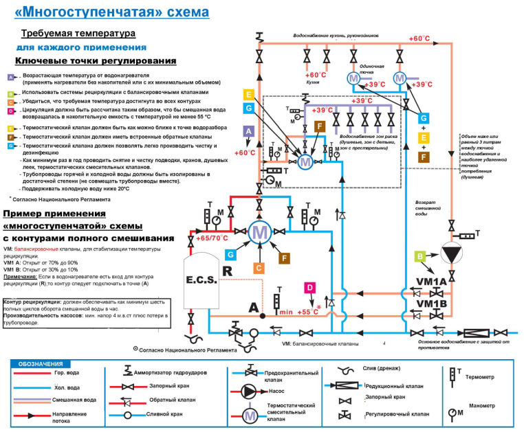 - Применение: термостатический подмешивающий клапан для систем горячего водоснабжения зданий и сооружений (бассейны, спортивные центры, школы, предприятия, санаторно-курортные комплексы, медицинские учреждения, детские сады и т.д.), где необходимо поддержание температуры горячего водоснабжения на одном уровне, независимо от колебаний температуры и давления (в пределах 1.5 бар)