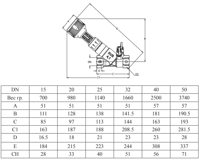 - Тип : балансировочный ручной клапан