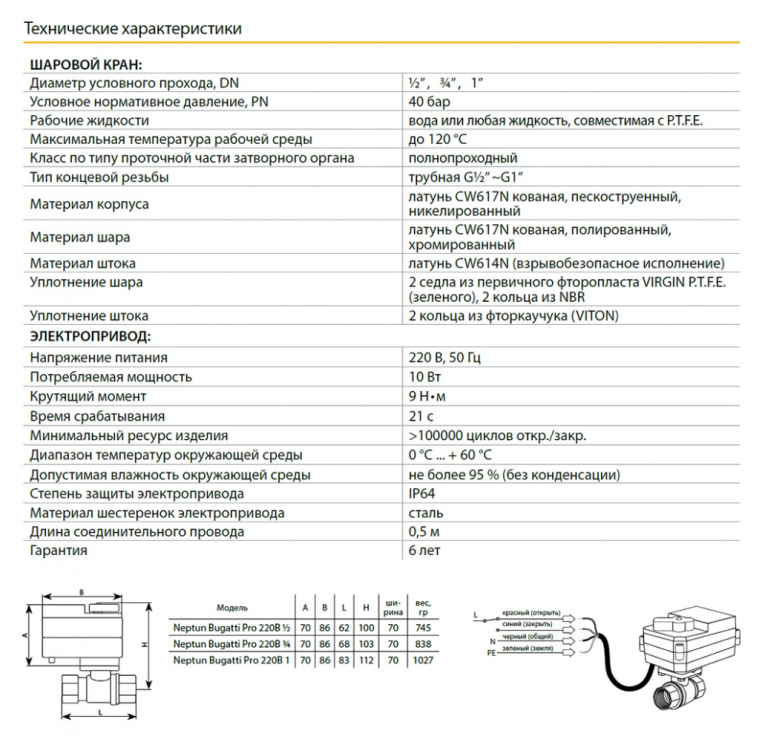 Кран шаровый Neptun Bugatti Pro 220В 1/2" (bugatti-pro-220v-1-2)