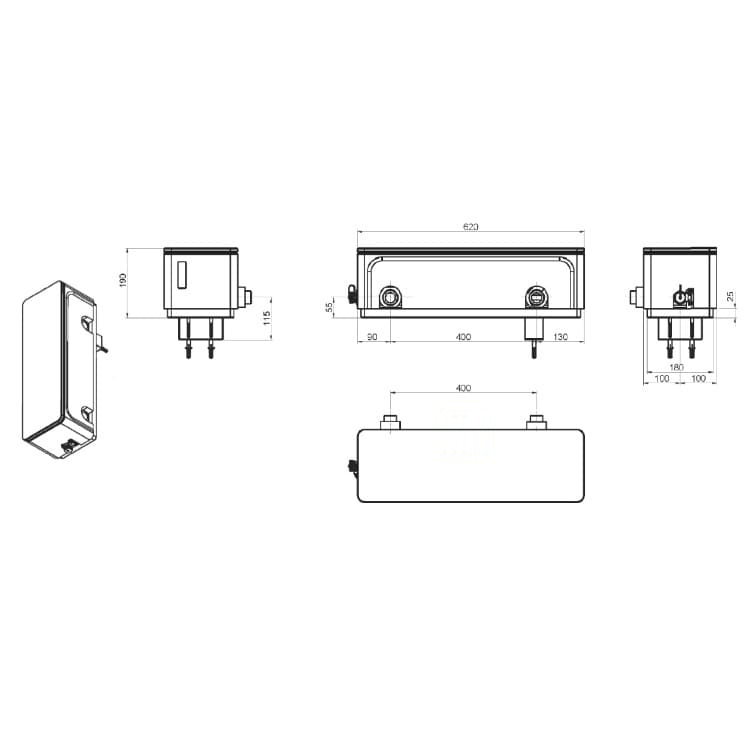Подключение к источнику: 1½ НГ (DN 25) со стороны котла и потребителя или 2 НГ (DN 32), плоское уплотнение. Для перехода на наружную или внутреннюю резьбу и подключения к источнику можно использовать трубу и фитинги.
