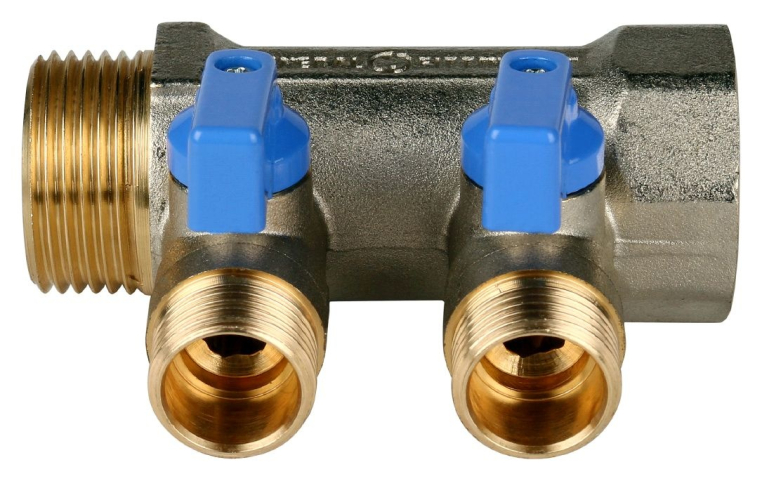Коллектор с шаровыми кранами STOUT SMB 6201 011202 1", 2 отвода 1/2" (синие ручки)