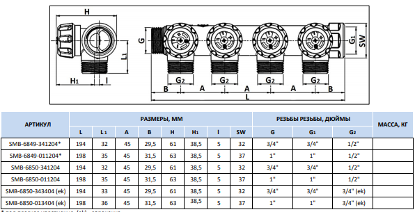Коллекторы распределительные с запорными клапанами для систем водоснабжения и отопления, тип SMВ 6849(50) STOUT – предназначены для распределения потока транспортируемой среды по потребителям путем перекрытия клапанов на отводах. Коллекторы могут использоваться на трубопроводах систем холодного и горячего водоснабжения, а также для транспортировки жидкости, не агрессивной к материалам элементов коллекторных систем. Основная задача распределительного коллектора для системы водоснабжения это – подведение равномерного водного потока к каждой точке в жилом помещении, исключение перепадов давления и температур при одновременном пользовании несколькими сантехническими приборами.
