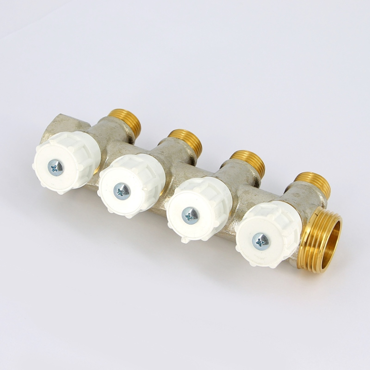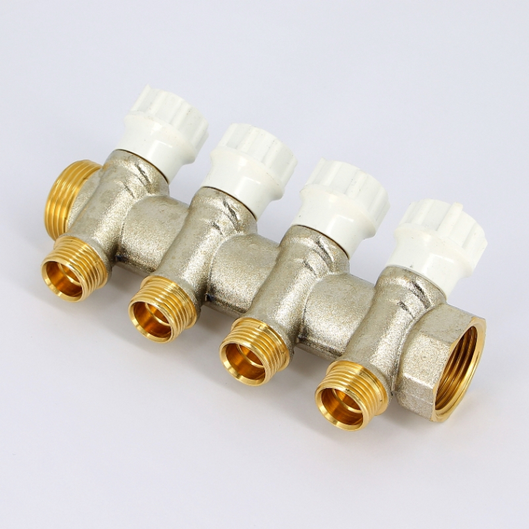 Коллектор оснащен пластиковыми вентилями, которые позволяют регулировать напор воды для каждой точки разводки. Рекомендованный момент затяжки – 40 Нм, максимальный момент затяжки – 60 Нм. Максимальная рабочая температура коллектора +110 оС. Для присоединения к трубопроводу используется наружная / внутренняя резьба HB G 1". Для присоединения контуров отопления применяются отводы с наружной резьбой H диметром G 1/2" х 16 мм с конической посадкой. Резьба: ISO228 (эквивалентно DIN EN ISO 228 и BS EN ISO 228)