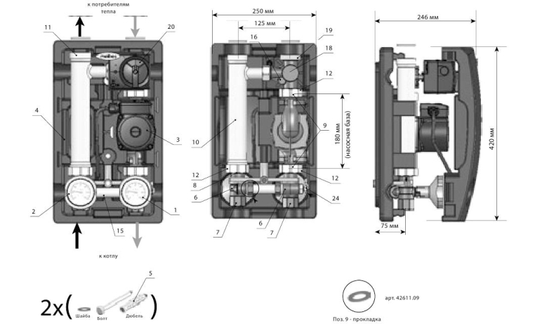 Насосная группа Meibes MK 1"" электронный термостат 20-80С без насоса ME 45841.5 EA RU (ME 45 841.5 ЕА RU)