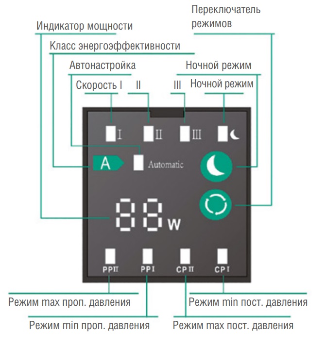 Насосы Pumpman Star имеет минимальную потребляемую мощность 5 Вт, индикацию текущей потребляемой мощности, вал, изготовленный из химически инертной керамики (предотвращает «закисание» после долгого простоя системы), экономичный ночной режим, чугунный корпус с применением алюминия, крыльчатку из стеклоармированного полипропилена, 100% медную обмотку. Рабочая камера имеет катафорезное покрытие. В комплект поставки входят резьбовые соединения и шнур питания. Насос имеет встроенную защиту от перегрузки по току, перенапряжения, недостаточного напряжения, перегрева и потеря фазы.