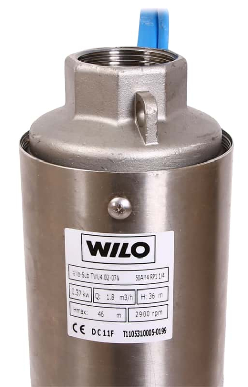 Насос скважинный Wilo TWU 4-0207-С с погружным двигателем предназначен для водоснабжения из скважин, колодцев и резервуаров, частного водоснабжения, повышения давления и понижения уровня воды, дождевания и обводнения, нагнетания чистой воды без длинноволокнистых и абразивных компонентов. Насосы серии TWU 4 нельзя применять для сточных вод, жидких и фекальных отходов, неочищенных сточных вод. Насосы Wilo серии TWU представляют собой затопляемый насос с погружным двигателем, который может эксплуатироваться в вертикальном и горизонтальном положениях при стационарном погружном монтаже. Многоступенчатая гидравлическая часть с радиальными или полуосевыми рабочими колесами имеет секционное исполнение. Гидравлический корпус и вал насоса выполнены из нержавеющей стали, рабочие колеса – из норила. Напорный патрубок выполнен в виде вертикального резьбового фланца с внутренней резьбой и встроенным обратным клапаном.
