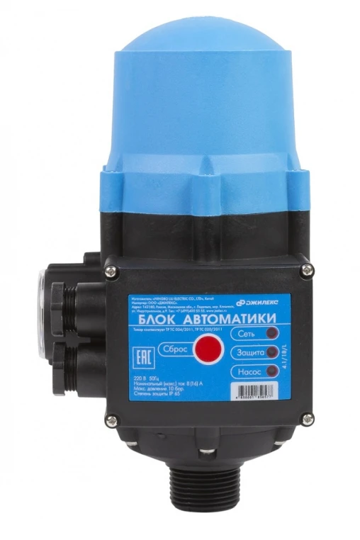 Блок автоматики позволяет автоматизировать работу электронасоса, запуск при понижении давления (открытие кранов) или остановку при отсутствии водного потока в системе водоснабжения (закрытие кранов).