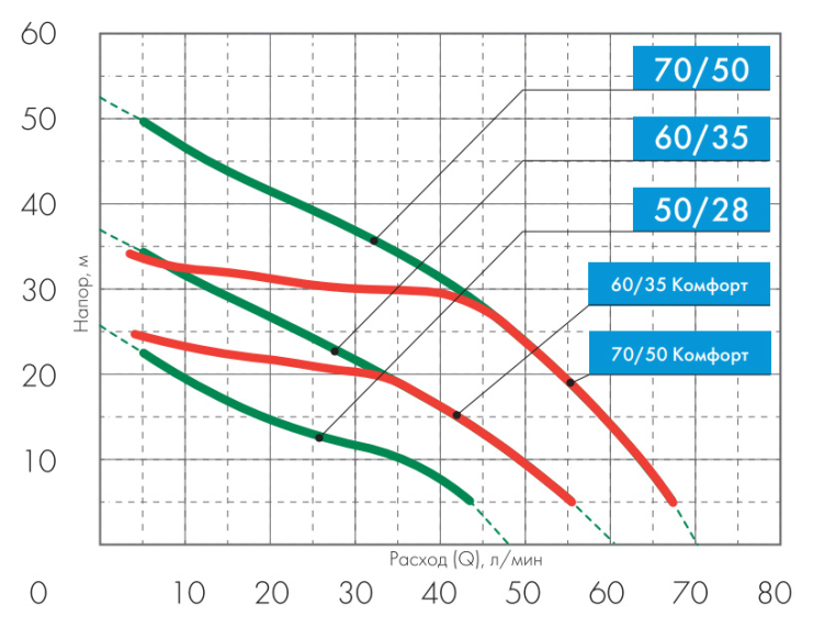 - Максимальный напор: 50 м