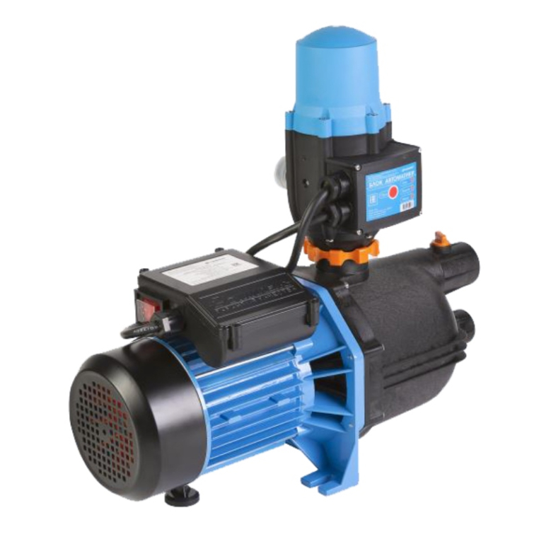 - Благодаря блоку автоматики насос работает в автоматическом режиме, в блок встроена защита от «сухого хода»