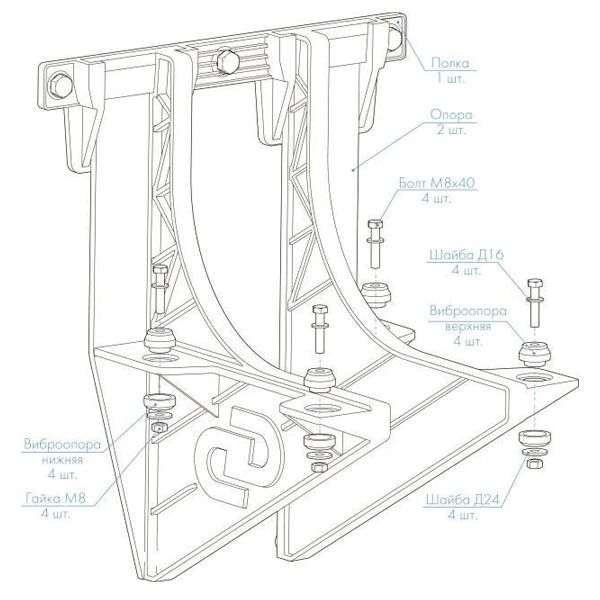 Такой вид установки позволяет избежать контакта ножек гидроаккумулятора с "сырым" полом подсобного помещения, что значительно снижает риски возникновения ржавчины. Виброопоры, идущие в комплекте значительно снижают гул и вибрацию насоса. При помощи кронштейна, возможна установка насосной станции в колодце