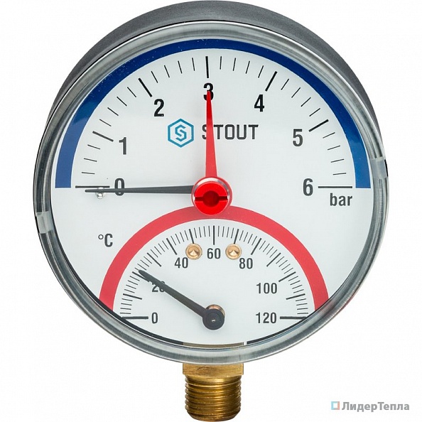 Термоманометр Stout радиальный в комплекте с автоматическим запорным клапаном. Корпус Dn 80 мм 1/2 дюйма (SIM-0006-800615) (13937)