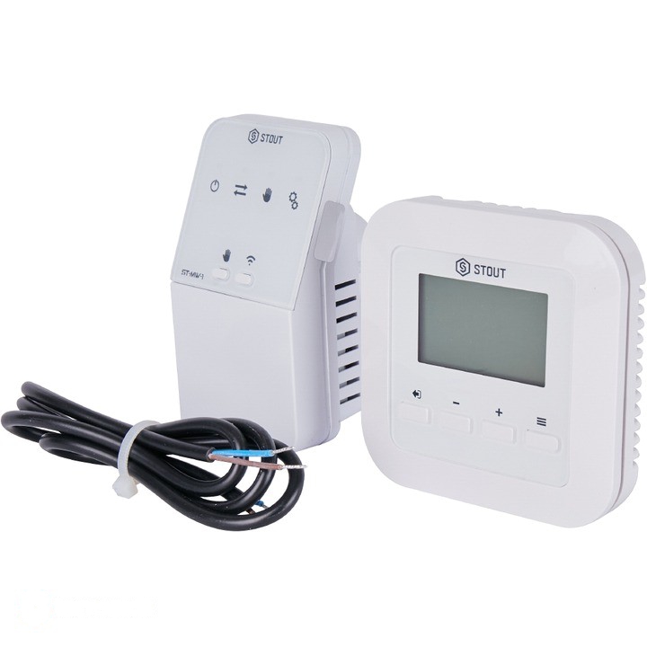 Беспроводной комнатный двухпозиционный регулятор ST-295v2, белый STOUT STE-0101-029521 RG008V0JPUEPL4 позволяет управлять температурой в помещении. Оснащен встроенным датчиком температуры воздуха.
