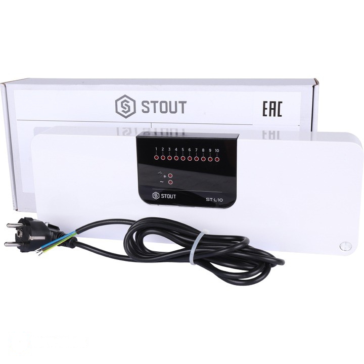 Проводной контроллер термостатических клапанов L-10 STOUT STE-0101-010000 RG008V0JGFP2EJ применяется для управления термоэлектрическими приводами. Необходимо подключение комнатных переключающих термостатов или регуляторов температуры