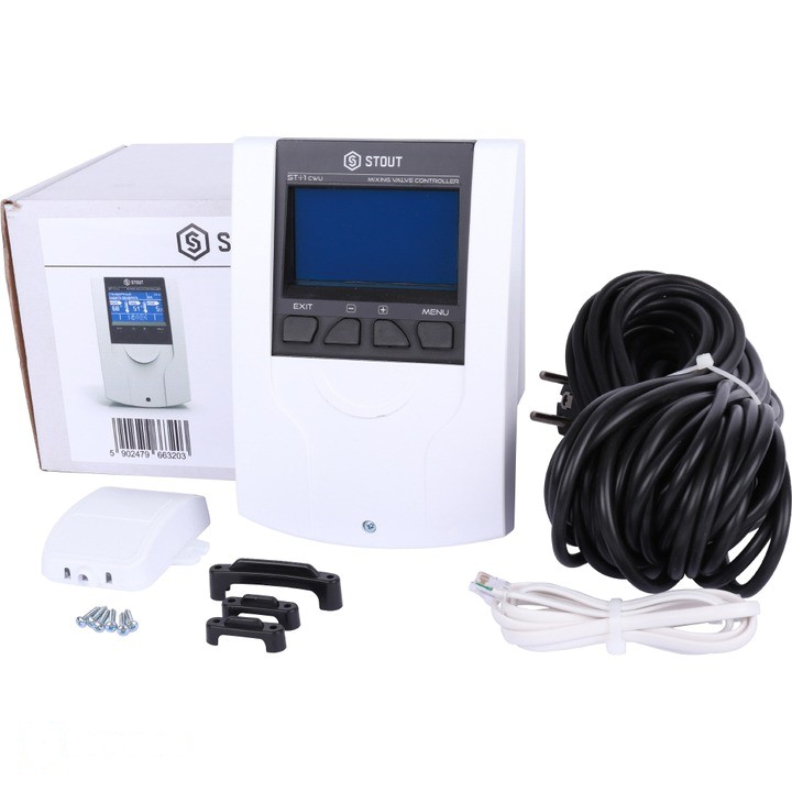 Контроллер для управления работой смесительного клапана i-1 CWU STOUT STE-0101-001002 RG008V0JPJMF88 используется для управления температурой в системе отопления, включающие несколько источников тепла: котел, насосно-смесительные контура, контур ГВС и т.д.