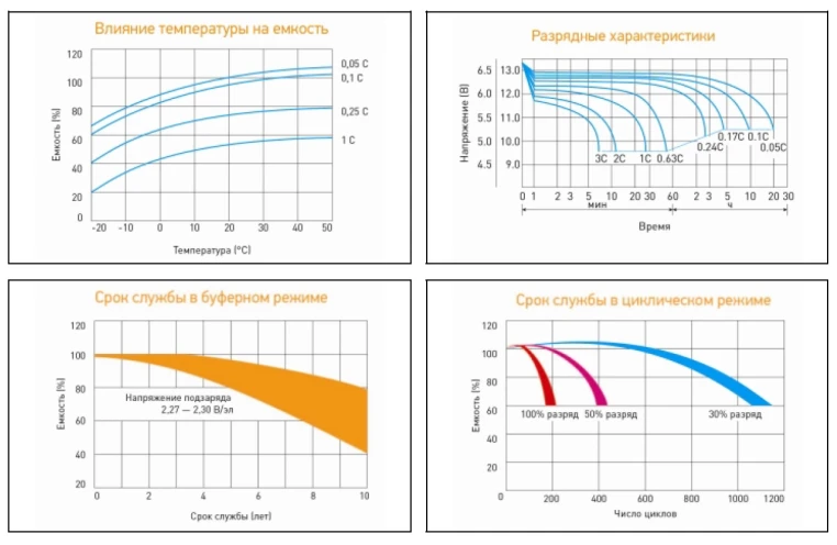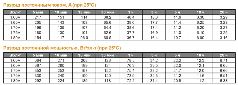 - Саморазряд: 3% емкости в месяц при 25 оС