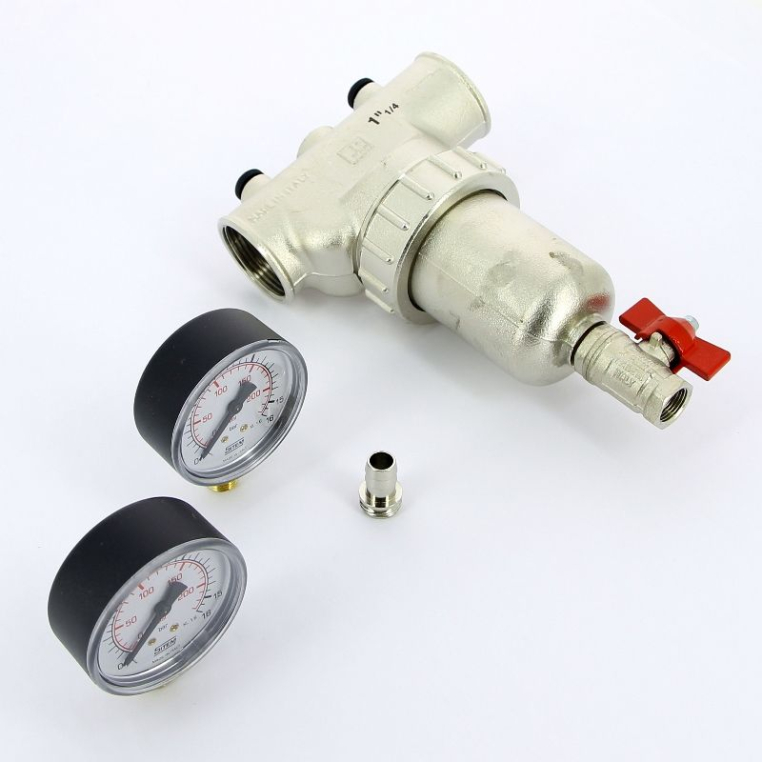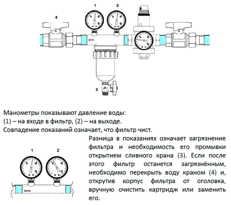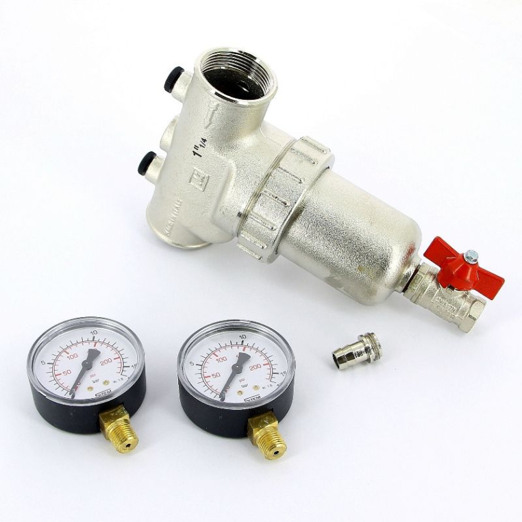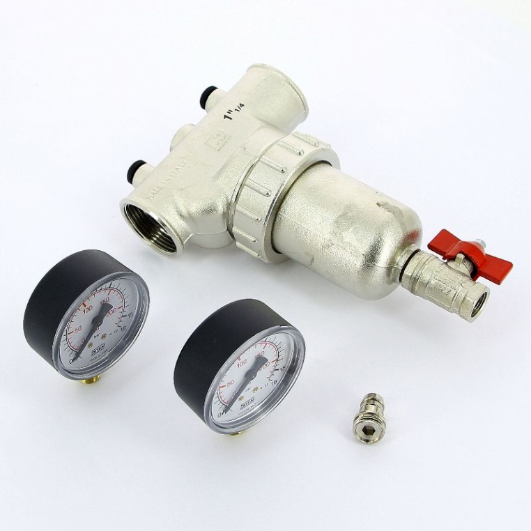 - Комплектация: фильтр в сборке, 2 манометра, сливной кран