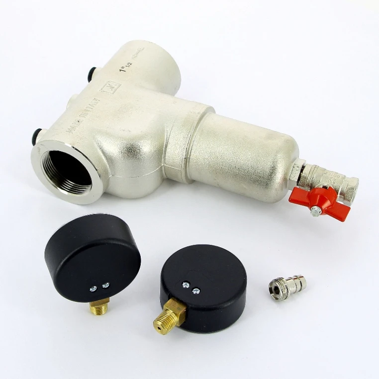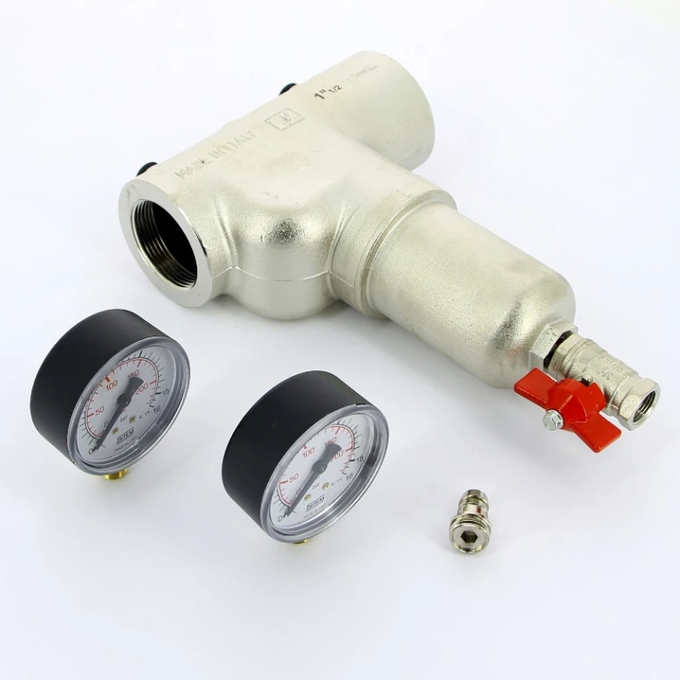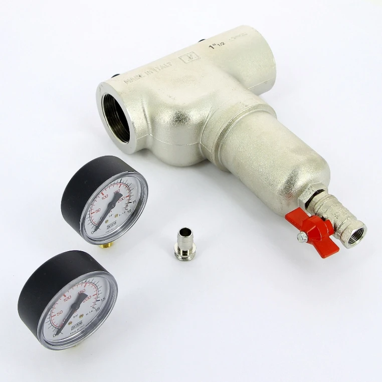 Фильтр механической очистки самопромывной с двумя манометрами ITAP 1" 1/2 применяется для очистки потока воды от механических примесей в системах трубопроводов горячей и холодной воды. Применяется также в системах домашнего отопления, установках кондиционирования и системах сжатого воздуха. Поставляется с извлекаемым картриджем, двумя манометрами и краном со штуцером для слива загрязнений. Изготавливается из никелированной латуни. Изделие способно работать в диапазоне температур от 0 оС до +110 оС. С моделью применяются стальные сетчатые фильтры ITAP серии 189 СА