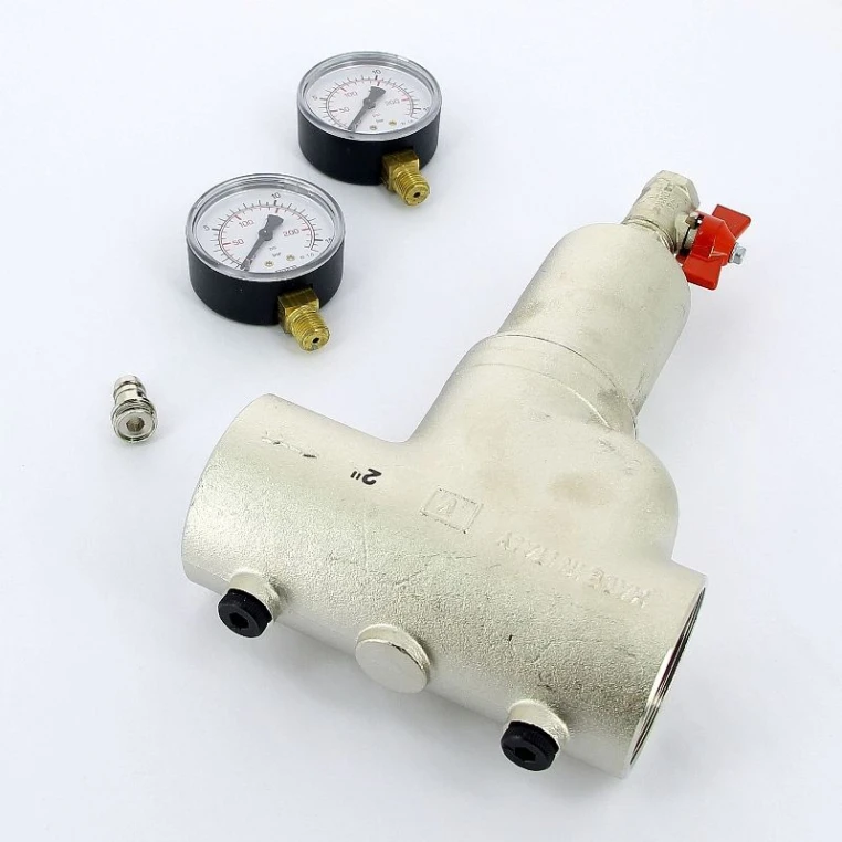 - Комплектация: фильтр в сборке, 2 манометра, сливной кран