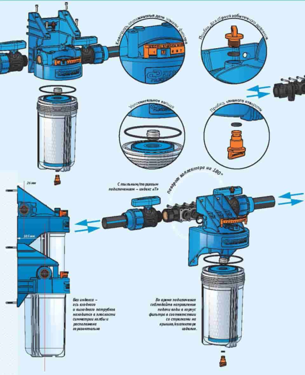 Корпус для картриджного фильтра Джилекс 1 М 20" предназначен для размещения в нем картриджных элементов-фильтров или фильтрующей засыпки для дальнейшей очистки холодной воды в бытовых условиях от механических частиц (ржавчины, песка, ила и другое), а также хлорорганических соединений, нефтепродуктов, пестицидов, тяжелых металлов, растворенного железа и иных органических и неорганических веществ. Фильтрующий корпус Джилекс 1 М 20" имеет внутреннюю латунную резьбу подключения 1" и синий пластиковый стакан для размещения фильтра. Изделие представляет собой проточный фильтр воды, который подключается к водопроводу холодной воды для питьевого водоснабжения. Движение воды осуществляется в горизонтальном направлении с боковым подключением.