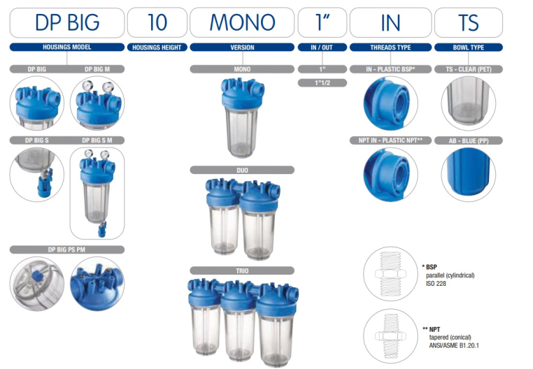 Колба фильтра 10" Atlas Filtri DP BIG 1" 2P SX представляет собой корпус для фильтрации и обработки холодной воды до 45 оС, совместимый с картриджами SX со стандартными плоскими прокладками (DOE) с внешним диаметром 4,5". Благодаря патрубкам 1" с пластмассовой резьбой GAS цилиндрического (BSP) или конического типа (NPT), DP BIG адаптируются к необходимости любой большой пропускной способности фильтрации для бытовых и промышленных целей. Фильтр пригоден для различных типов фильтрации, в том числе многостадийной, и устойчив к воздействию химических веществ