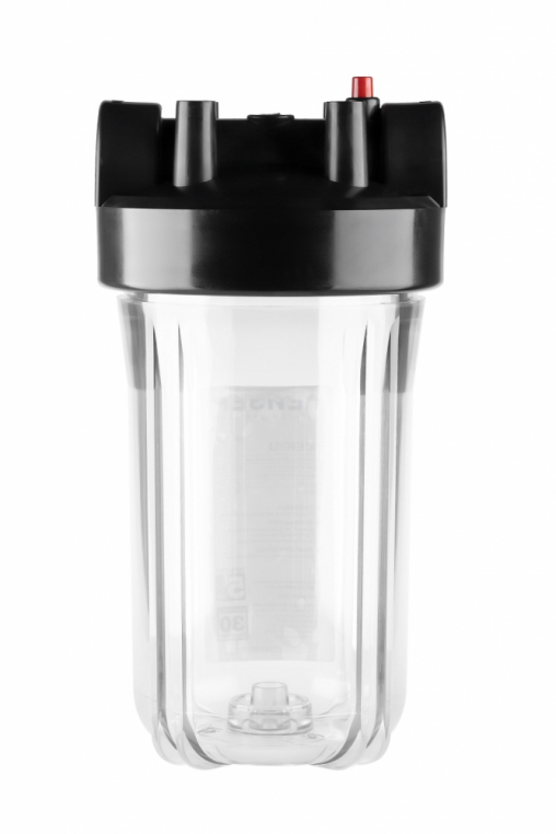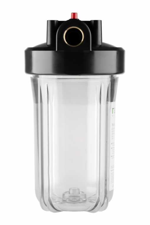 Корпус Гейзер 10BB прозрачный изготовлен из прозрачного полипропилена; крышка корпуса – черный полипропилен с латунными вставками. Корпус рассчитан на работу под давлением и установку на входе в систему холодного водоснабжения. В производстве корпусов используется только первичное сырье пищевого класса.
