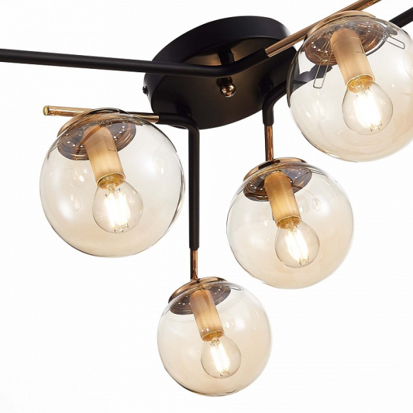 Изделие SLE106902-06 от итальянского бренда Evoluce относится к коллекции LITERNO. Потолочная люстра Evoluce LITERNO SLE106902-06 с плафонами в виде шаров осветит помещение площадью 12 кв.м. Для устройства рекомендуется использовать лампы накаливания с цоколем E14 и мощностью 40 W. Основными материалами для производства используется металл и стекло. Преимущественно представляется в цвете Черный и Янтарный.