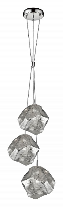 Подвес из металла цвета хром, с прозрачными проводами и тремя стеклянными плафонами с хромовым гальванизированным напылением. D430mm, H1200-1830mm, 3хE27